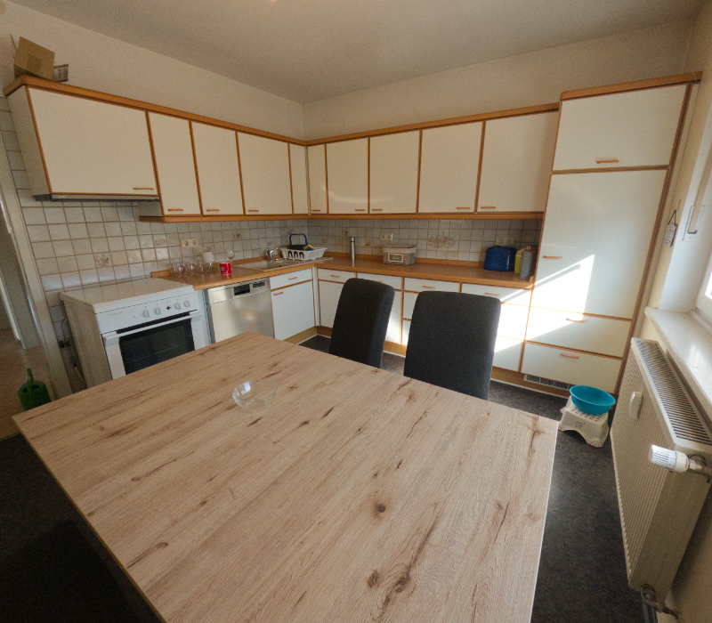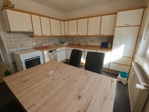 Unsere Küche ist circa 15 qm groß und bietet genügend Platz zum Kochen und Essen. Sie ist mit folgenden Geräten ausgestattet: