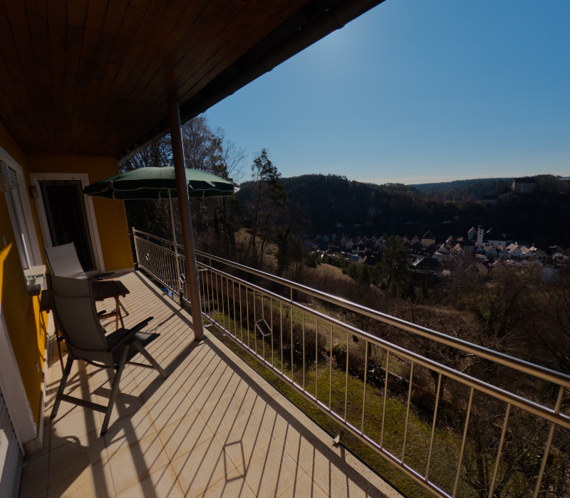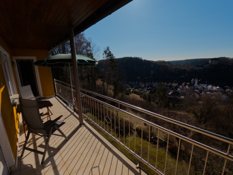 - Balkon mit Sitzgelegenheiten mit Blick auf die Pottenstein
