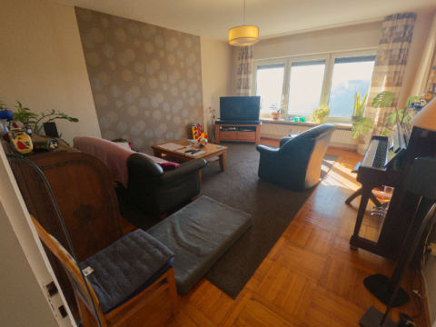 Unser Wohnzimmer ist der perfekte Ort, um sich nach einem langen Tag in Pottenstein zu entspannen. Mit einer Größe von circa 24 qm bietet es genügend Platz, um sich zu erholen und die Schönheit der "Fränkischen Schweiz" zu genießen.