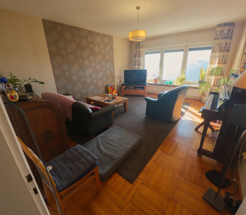 - Ein großes, bequemes Ecksofa lädt zum Verweilen ein und bietet eine perfekte Sicht auf die Pottensteiner Burg.